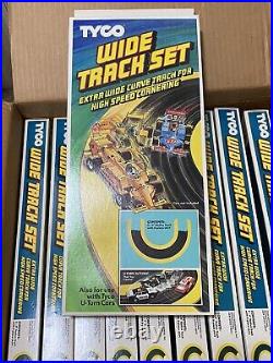 This is a lot of ten (10) new curve tracks. This vintage TYCO wide curve track set is a must-have for any slot car enthusiast. The set includes all the necessary components to create an exciting and challenging racing experience. The brand TYCO is known for its quality and attention to detail, making this set a reliable choice for collectors and racers alike.