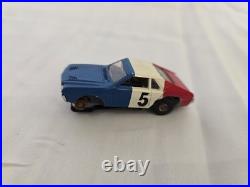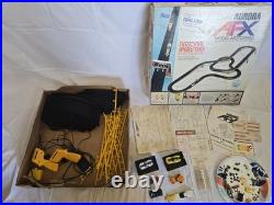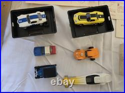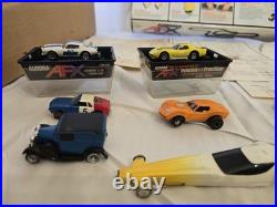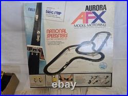 The 1973 Aurora AFX Model Motoring National Speedsters Electric Racing Set and Cars is a vintage slot car collection featuring cars from the iconic AFX brand. This original set includes track and electric HO scale slot cars designed for racing enthusiasts. With its classic design and high-quality construction, this set is a sought-after piece for collectors and hobbyists who appreciate the nostalgia and craftsmanship of 1970s slot car culture. Set also includes six original, rare 1973 slot cars, two with their original boxes. Track set with box and paperwork and all six slot cars included in sale.