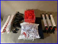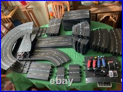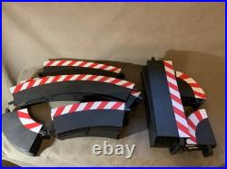 Lane Change right turn Inside to outside. 1/30 High banked curve (6 pieces). 3/30 High banked curve (6 Pieces). All the clips and things, 3d printed track risers, 3d printed guardrail sections, too much to list.