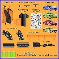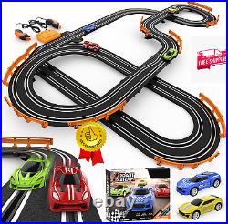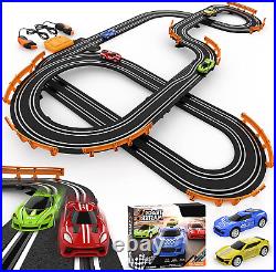 With an impressive track length of 18.4 ft, our slot car track offers extended racing enjoyment. The improved locking system ensures easy assembly in less than 15 minutes, requiring no tools. Feel the adrenaline as our race cars reach speeds of about 300-370 mph on the electric race track. The enhanced magnetism keeps the cars on track, and additional brushes are included for a seamless racing experience. The race track operates on either electric power or 6xAA batteries (not included), providing flexibility for home and on-the-go racing. Crafted from environmentally friendly ABS plastic, our high-quality and durable race track set makes an excellent toy gift for kids on various occasions, including Easter, Christmas, Halloween, Thanksgiving Day, and New Year. Embark on an exciting racing adventure with our Realistic Slot Car Race Track Set - the perfect blend of fun, competition, and skill-building!