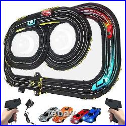 Built-in LEDs that glow at high speed, bring you the coolest racing experience ever. High-speed Remote Control Race track Double electric handles, control the speed of the racing car 1.