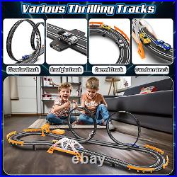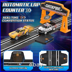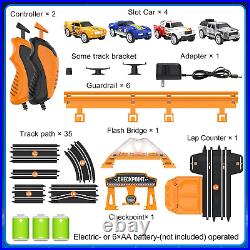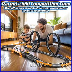 Creating Wonderful Kids' Memories: The toy slot car track is car games for two Players that family, friends both kids and adults will enjoy; two-person racing track set can accompany kids, spend a happy parent-child time, remaining wonderful memories. Easy to Install & Control Electric Track: The rc tracks for boys 4-7 have a better system to lock into place and easy to put together; controllers allow the driver to choose slow or fast speed control to improve the driver's experience.