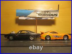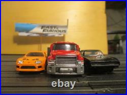 HO 1:64 Metal Body Slot Car Custom Metal Body Slotcars, 3 Fast and Furious Slot Cars With Trailer. 3 Fast and Furious Slot Cars With Trailer.