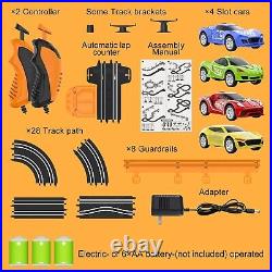Twice the Fun: Designed for two players, it includes four high-speed cars and two durable remote controls. Extra Long Track: At 18.4 ft long, our track offers ample racing space and features an enhanced locking system for easy installation.