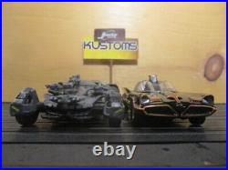 2 Slotcars (RUNS ON HO TRACK)2 Metal Body Slotcars BATMAN JADA STYLE. {1:32 Scale}2 Slotcars BATMAN JADA STYLE. Jada Toys DC Comics Justice League Batmobile. Jada Toys Batman Classic 1966 TV BATMOBILE. Will run on all HO scale slot car.