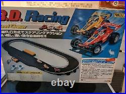 The Nikko R D Racing Road Chaser Electro Magnetic Slot Cars and Track set is a high-quality toy car racing set made in Japan. The cars are designed by Nikko, a well-known brand, and are original in their design. This set includes cars that are driven by electro-magnetic forces, providing an exciting and fast racing experience for children and hobbyists alike.