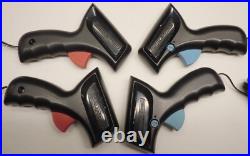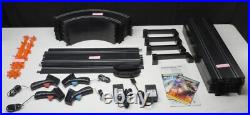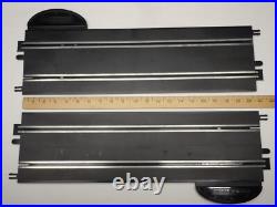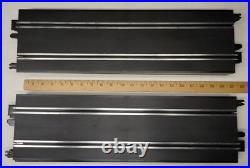 Scalextric 1/32 START Series Slot Car Track Lot. This listing is for 32 (thirty-two) sections of 1/32 scale "START" series slot car track made by Scalextric / Hornby. (14) - Orange 13 7/8 inch Long Guard Rail. (4) - Speed Hand Controllers Red / Blue with governor speed dial control. (4) - Black track supports.