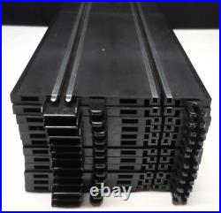 (2) - 20 5/8 inch Long Terminal Straight Tracks #ML-06665. (12) - 20 5/8 inch Long Straight Tracks #ML-08882 / (1) track has one tab broken off expansion clip. (18) - 1/4 Curve Tracks #ML-07361. (2) - Catalogs 2010 & 2011 / Both show wrinkles, wear and some damage. Track surfaces are nice with no damage or repairs / Some show some lite marks and scuffs.