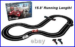 Feel the sense of accomplishment of making it to the end of an endurance race, with nearly five meters of track and four different track configurations to pick from, plus a lap counter to keep track of your progress against your opponent. Even if you prefer shorter, quicker races this set is perfect with its two Super Resistant Le Mans Prototype cars that can keep going even after more serious accidents.