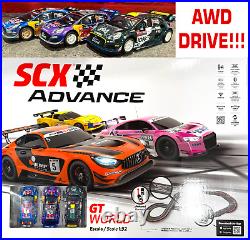 SCX 1/32 ADVANCE 2.0 GT 4X4 World Race Set wireless race set. >>>>>WITH REAL SCX US 14V POWER SUPPLY - NO EUROPEAN ADAPTER. This SCX Advance set contains everything you need to go slot car racing! Scalextric Advance puts in your hands all the power of known digital systems, but it takes a technological leap at the level of performance in the sensitivity and control of the car in the race.
