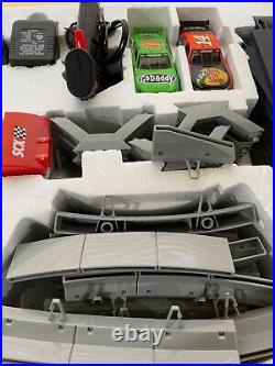 Rare SCX Nascar Super Speedway 1:32 Scale Slot Car Set Danica Patrick Go Daddy and Tony Stewart Bass Pro Shop Cars Included. Original System Tri-Oval Set so that is the configuration unless you add your own track pieces to expand. Complete and everything is in overall very good pre-owned condition and comes in original box.