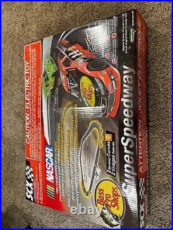 SCX Nascar Super Speedway 132 Slot Car Set Danica Patrick Tony Stewart Bass Pro