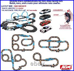 AGM MASTECH Super Fast Slot car race track set. Feel the power and super-high speed of the Ho scale 1:64 slot car racing on the track and reaching Scale speeds of 370 mph scale speed! This car is faster compare to any similar product in the market, bringing you the coolest racing experience ever.4 cars included & Easy-build and dis-assemble track design. 4 Deliciated licensed cars with LED headlights and strong magnetic base. Cars run smoothly and super fast. New design track is easy to put together. Please make sure that the track pieces are completely snapped together.