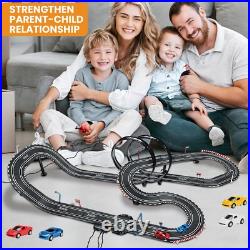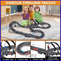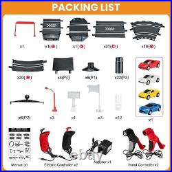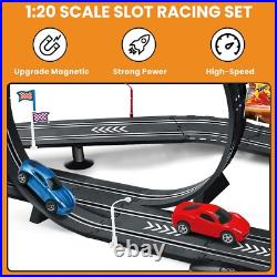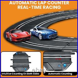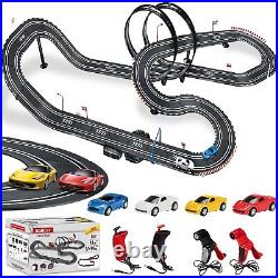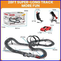 At the same time, our race track has an automatic lap counting function, which records the race situation in real time, giving racers a more exciting racing experience. Electric Controller & Manual Controller: Include 2x electric and 2x hand crank-powered controllers. The Electric Controller uses the trigger for speed adjusting and has a boosted bottom on top. The hand controller is perfect for beginners to crank up to full speed for more challenging races. Both controllers allow the driver to choose slow or fast speed settings to reflect the driver######x27;s experience. Easy to Install 28 Ft Super-long Track: A better system to lock into place and easy to put together; the race car track is 28 ft, which is long enough for kids to enjoy fast and furious; it is not only a toy, but also a tool to cultivate your child######x27;s interest. Dual Race Track & Multiple Fun: The toy slot car track is car game for two players that family and friends both kids and adults will enjoy; two-person racing track set that can accompany your kids to play together and spend a happy parent-child time. Magnetism Design Stabilizes Racecar: To keep the car on the track better, we have enhanced the magnetism, but it######x27;s also important to control speed, remember to slow down when turning; in addition, we prepare extra brushes on the bottom of the car. Perfect Gift: Made of high-quality and durable materials, it is a good choice of toy gifts for kids on Easter, Christmas, Halloween, Thanksgiving Day, New Year, and the best choice for kids######x27; Birthday and Christmas gifts.It######x27;s also a great race car toy for kids 6 7 8 9 10 11 12 years old.