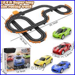 This is not just a friendship toy, but also a family toy, you can compete with your child, a great alternative to video games. Extra Long Tracks for Easy Installation: The slot car track is 18.4 ft long, which is longer than most other products, and has a better system to lock into place and easy to assemble. In order to keep the car on the track better, we have enhanced the magnetism, but it is also important to control the speed, remember to slow down when turning.