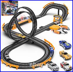 Slot Car Racing Track Set - 20.2 ft Long, 4 Cars, LED Features, Great Gift for Kids. Featured Racing Tracks Experience the thrill of racing with our comprehensive slot car race track set! It features a variety of track designs, including straight tracks, curved tracks, U-shaped slopes, and exciting 360° circular staggered tracks. The automatic lap counting function enhances the racing experience, making every lap count.
