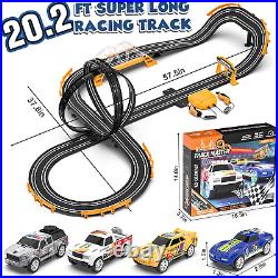 Ultra-Long Track : 20.2 feet for extensive racing fun. Durable Material : Made from high-quality ABS plastic for lasting use. What is the length of the track?The track measures 20.2 feet long, providing ample racing space. How many cars are included? The set comes with four different race cars. What age is this toy suitable for? It's designed for kids ages 4 to 12.