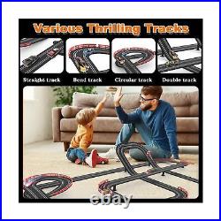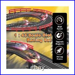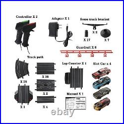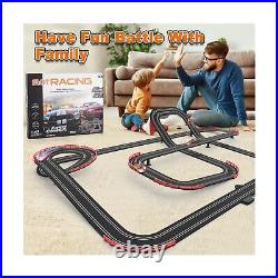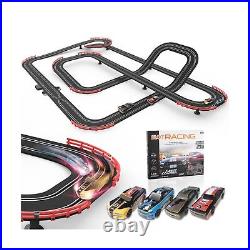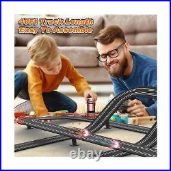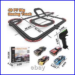 Slot Racing Car Track for Kids 1:43 Electric Powered 40Ft Big Racing Track Set with 4 Cars and 2 Hand Controllers, Gift Toys for Boys Girls 6,7,8 Years Old. Big Slot Car Race TracksEverything you need contained in the box to start racing including 4 cars, 2 speed controllers, and track layout.