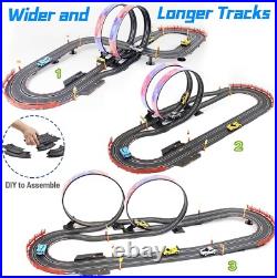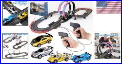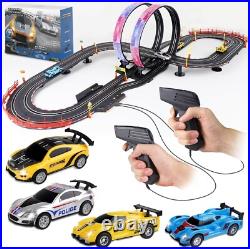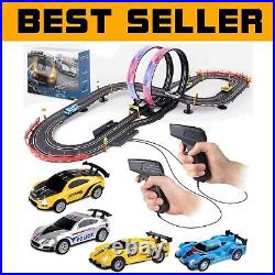 Thrilling Slot Car Race Track Set with 4 High-Speed Cars & Lap Counters for Kids. Thrilling Slot Car Race Track Set. Unleash the adrenaline of high-speed racing with our captivating Slot Car Race Track Set, designed to provide endless excitement for kids aged 6-12. This advanced racing game is perfect for young enthusiasts looking to challenge their skills and speed! Electric Track with LED Lights: Stretching over 19 feet long, the track features exhilarating speed reminiscent of real racing cars, complete with vibrant LED lights adorning the 360° loops.