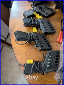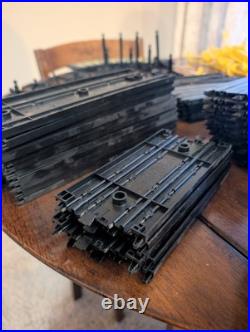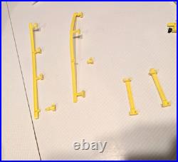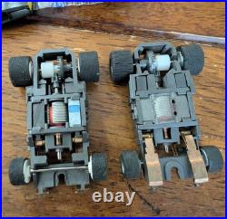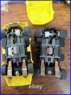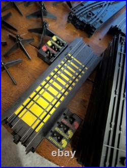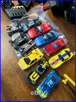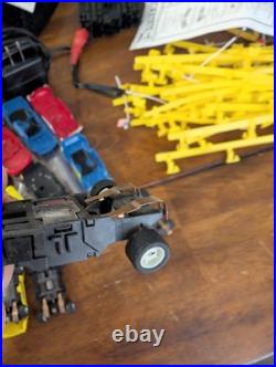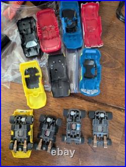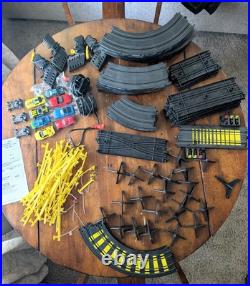 Take your slot car racing to the next level with the vintage Tyco 440 X2 Electric Racing Track Set. Featuring a 4-lane design and a 40' track length, this set offers an expansive layout for intense races. Model #6693 comes complete with four exotic cars with chassis and four bonus Corvette bodies. Please see all pictures for details, we did count out every piece and everything is accounted for. One of the number three supports does not have the fin that it needs to stand upright. And a couple of the guardrails are broken as shown.