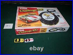 This is a really clean set. The box and accessories are all very clean. This might need some TLC to get completely running. But please look at the pictures The set looks excellent. Unleash the thrill of racing with the Tyco Challenge 100 High Performance Racing Complete Track set.