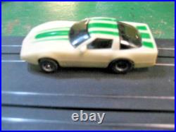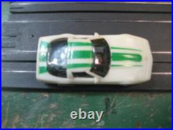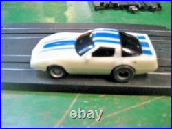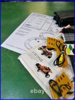 This TYCO PRO slot car track set #6200 Challenge 100. The set is complete and working. The cars have been disassembled cleaned and assembled with lots of new parts tested. The Track rails have been cleaned there are broken tabs. The transformer and controllers have been tested. The box is in Fair shape. This is ready to race. These cars are the 440x2.