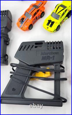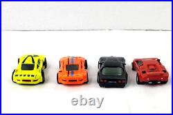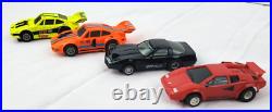 I noticed a couple tires needed replacing and one of the contacts as well. The cars are 2 Porsche 935's, Chevy Corvette ZR-1 & Lamborghini Countach. The cars are from the 1980's and probably the track too. We are including several pieces of track that are damaged, these are not a part of the 55 ft number. Please carefully review all photos and feel free to ask questions.