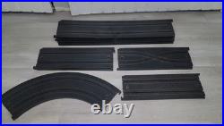 Tyco: 9" R 1/4 circle B5831 9" straight terminal track 6" straight B5830 15" straight B5838 Matchbox: 9" R curve 14-5221 7x 15" straight track 14-52-45 2x 9" straight track 14-5220 1x RC 90' apron 14-52-57 4x 9" terminal track 14-5222 1x RC Tip bridge assy 14-52-63 1x Auroa AFX (various years): 15" straight 2542 5x 9" straight 2517 2x 9" crisscross 2524 2x 9" cobblestone 2506 1x 9" radius curve 2519 14x Auroa by Tomy: 9" R curve 1/4 circle 503349 4x 9" R curve 1/4 circle with lighting bolt 6x 15" straight track 503346 10x 15" terminal track 503345 1x 6" straight track 2x 9" squeeze track 503348 1x 12" R banked track 1/8 circle 4x 9" straight track 503347 4x 3" R curve 1x 9" chicane track right 1x Loop track w/ arrows 2x Loop track 10x 12" curve 1/8 circle 2x Loop braces 4x.