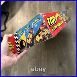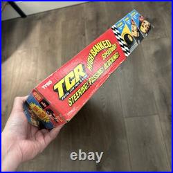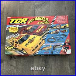 This vintage Tyco TCR High Banked Speedway Race Track set is a must-have for any slot car enthusiast. The set includes everything you need to get started, including tracks, slot cars, and even the original box.