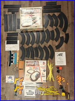 Huge lot of AFX pieces as shown. The sets as shown in the pictures are incomplete - this is a large mixed lot of pieces adn includes all shown in the listing pictures such as the four controllers, manual, 2 stands, power cord, and original boxes.