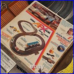 Vtg Aurora AFX 1976 Slot Car Lot Track Controllers Stands Guard Rails Power Cord